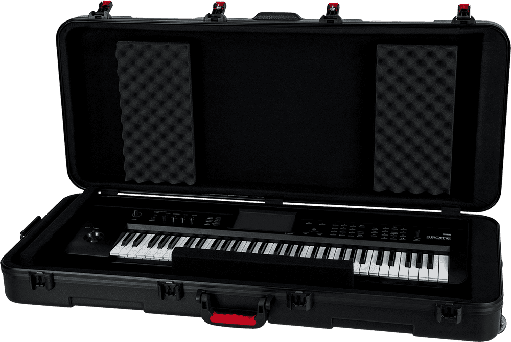 El estuche está diseñado para la mayoría de teclados de 61 notas. Para asegurar la compatibilidad, mida su instrumento y compare sus dimensiones con las dimensiones interiores del estuche (1117,60 x 441,50 x 152,40 mm). El sistema de bloques de espuma ajustables permite personalizar el interior para un ajuste ceñido y seguro.