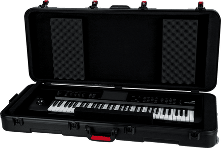 Estuche rígido para teclado de 61 notas, fabricado en polietileno de grado militar. Dimensiones interiores de 1117,60 mm de longitud, 441,50 mm de anchura y 152,40 mm de altura. El interior está forrado con felpa e incluye un sistema de bloques de espuma ajustables con velcro para una sujeción personalizada. Equipado con dos ruedas empotradas, un asa de transporte ergonómica y cuatro cierres, dos de los cuales son de bloqueo con aprobación TSA. Cuenta con una cenefa de aluminio con recubrimiento de polvo para mayor durabilidad y sellado.