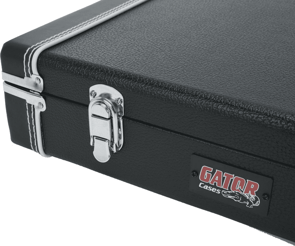 El estuche Gator GW-ELECTRIC de la serie Deluxe Wood ofrece una solución de almacenamiento y transporte de nivel profesional para guitarras eléctricas de cuerpo estándar. Diseñado con una robusta construcción de madera contrachapada, este estuche está hecho para resistir los rigores de la carretera, protegiendo su valioso instrumento de golpes, caídas y cambios ambientales. Su elegante acabado exterior en Tolex negro, acentuado con costuras de contraste, le confiere una apariencia clásica y sofisticada, mientras que los herrajes cromados aseguran durabilidad y un funcionamiento fiable a lo largo del tiempo.