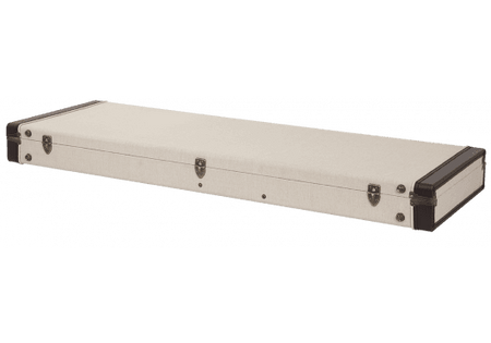 Los herrajes de latón/bronce envejecido, incluido el cierre con cerradura, refuerzan la sensación de estuche clásico de alta gama, a la vez que garantizan un cierre firme. El asa recubierta en cuero sintético (estilo “vintage leather”) está diseñada para un agarre cómodo y equilibrado, permitiendo transportar el bajo con seguridad entre ensayos, bolos y estudio. Con unas dimensiones interiores aproximadas de 119,4 cm de longitud total, 55,9 cm de longitud de cuerpo, 36,1 cm de ancho de caja y 8,4 cm de altura, el GW-JM-BASS se adapta a la gran mayoría de bajos eléctricos de escala estándar.