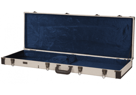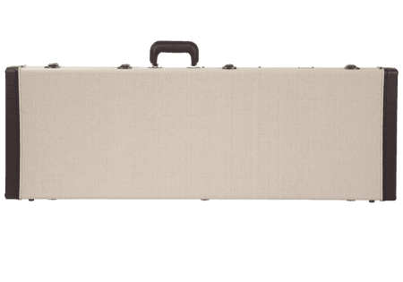 - Estuche rígido deluxe de madera para bajo eléctrico de escala estándar.