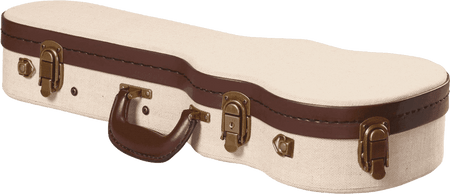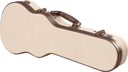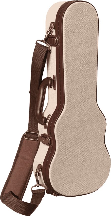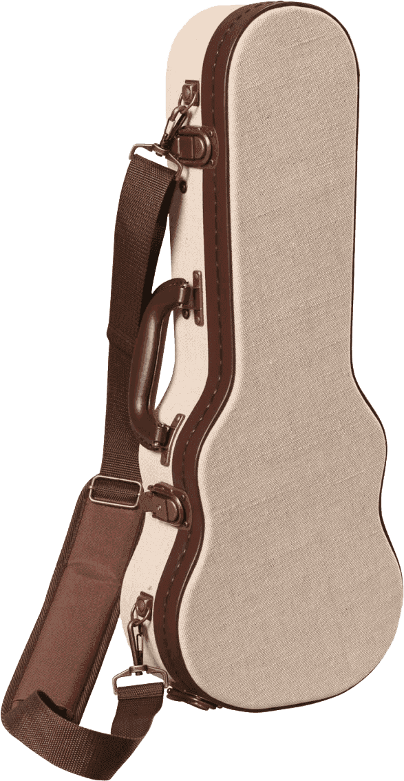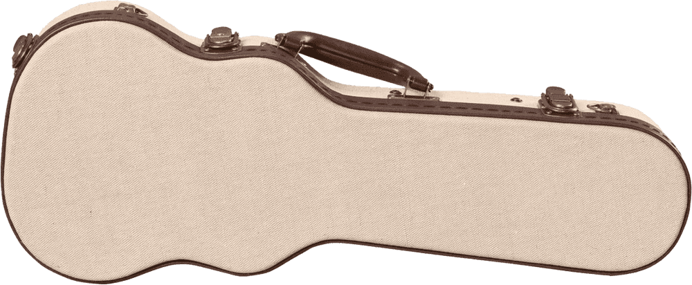 • Imagen vintage muy cuidada: el acabado beige tipo burlap con herrajes de latón envejecido ofrece un aspecto elegante que combina con ukeleles de estilo tradicional o moderno.