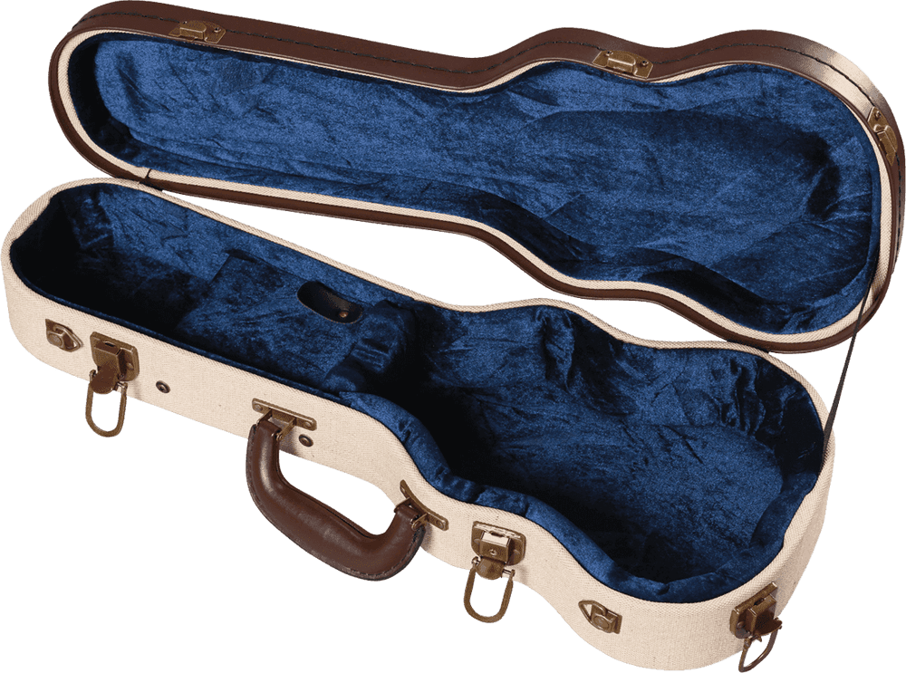 Su estructura está construida con paneles de contrachapado de alta resistencia, creando una carcasa sólida y duradera frente a golpes, apilado y uso intensivo en ensayos y conciertos. El exterior en acabado tipo lona/burlap texturizada no solo aporta un aspecto muy característico, sino que también resiste bien el roce diario. El interior de terciopelo azul de alta densidad protege el acabado del ukelele y ofrece un ajuste cómodo para modelos soprano estándar.