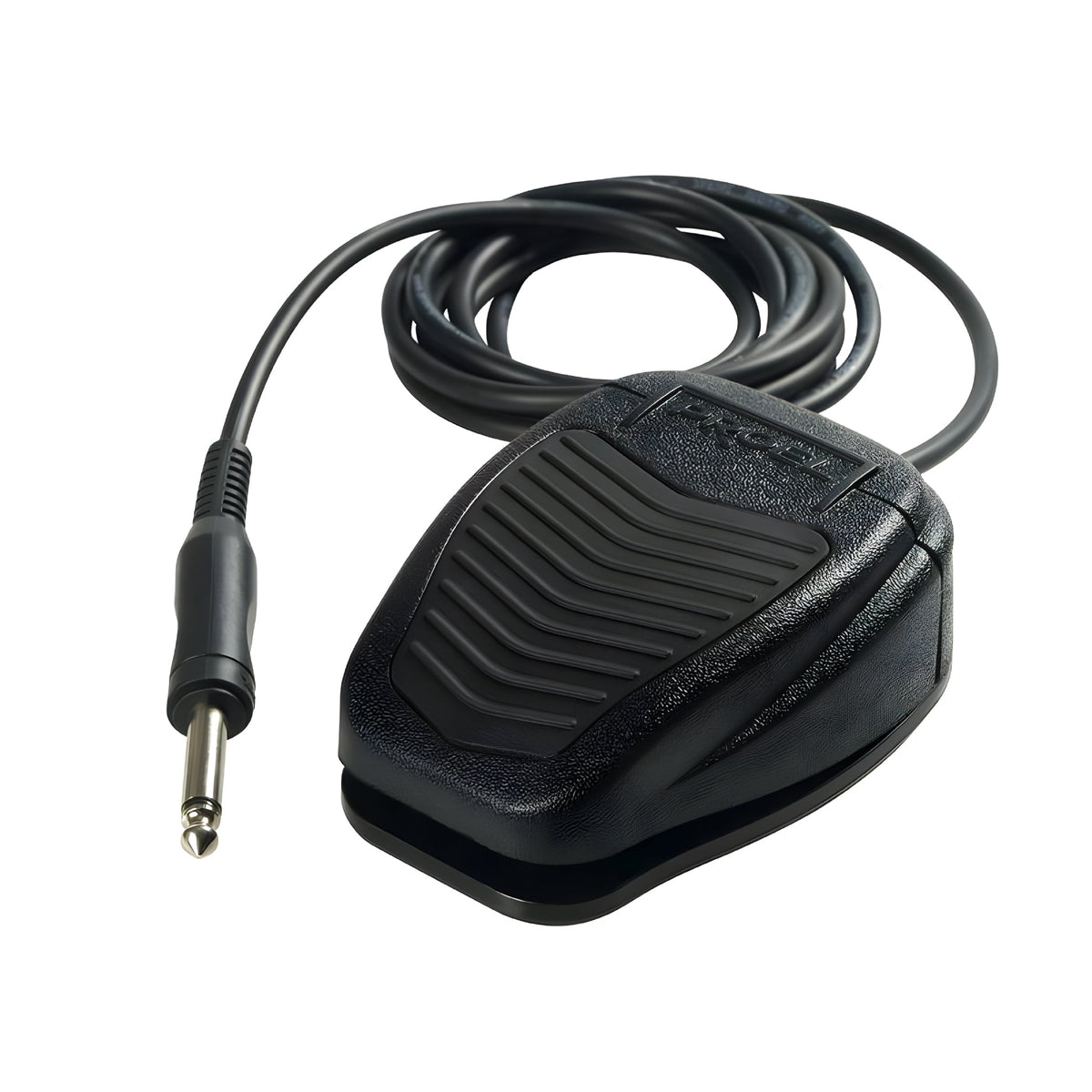 Pedal de comando ON/OFF fabricado en termoplástico ABS de alta resistencia con base de goma antideslizante. Dimensiones de 78 x 104 x 39 mm y peso de 0.25 kg. Incluye cable integrado de 2.00 metros terminado en conector Jack macho mono de 6.3 mm (1/4") moldeado y chapado en oro. Clasificación eléctrica de 0.3A/30V DC.