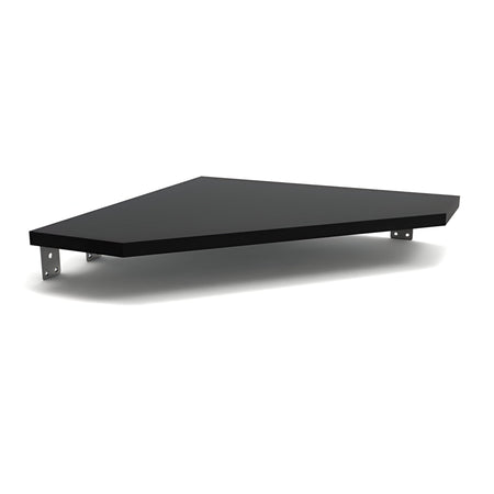 Adaptador de unión para mesas Glorious Sound Desk (Pro/Compact) y Workbench con Modular Side Rack; material MDF y tablero de partículas; dimensiones 480 × 480 × 18 mm (An × Fondo × Al); peso 2,35 kg; carga máxima recomendada 25 kg; instalación izquierda/derecha; uso como solución de esquina; acabado negro; entrega sin decoración.