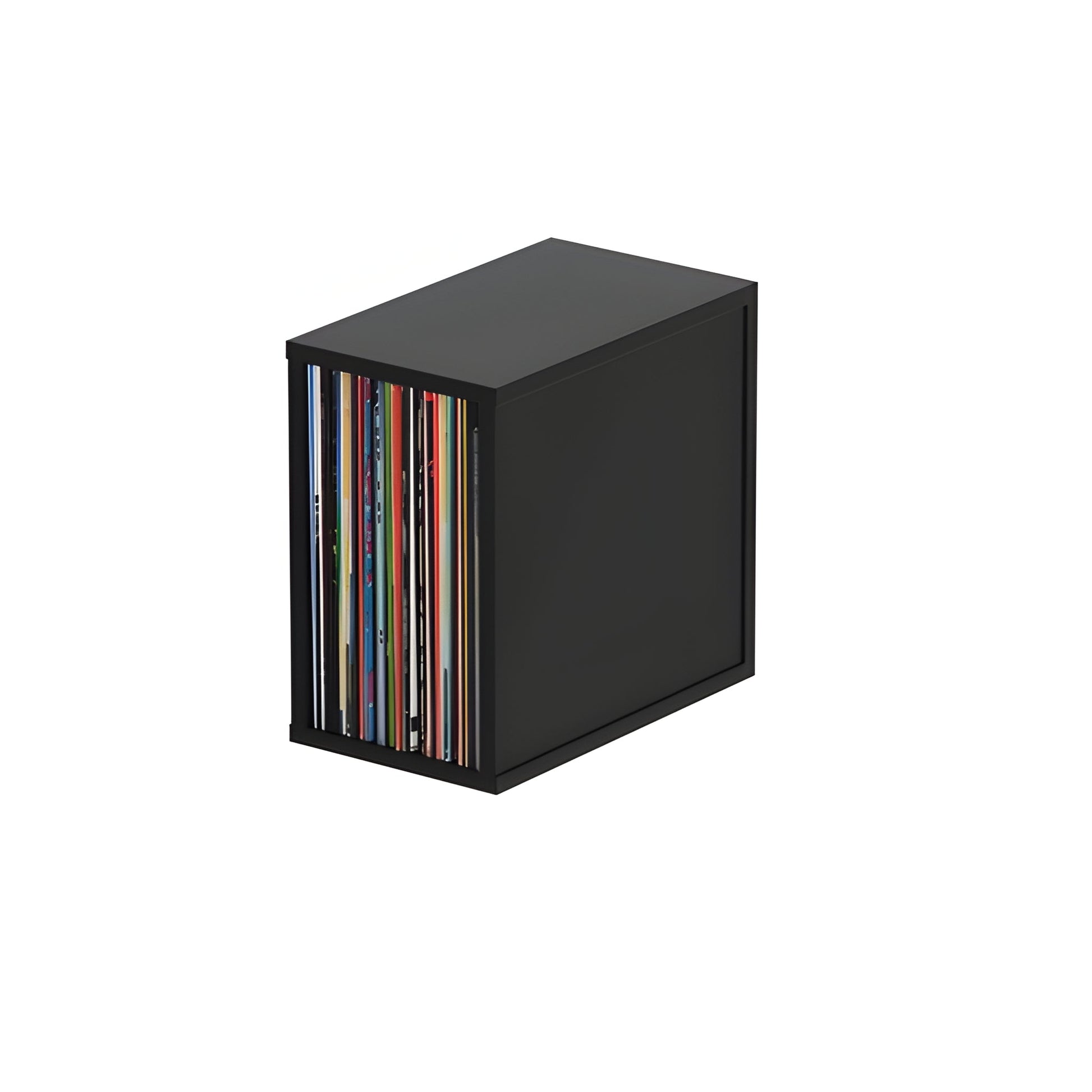 La Glorious Record Box Black 55 es un sistema de almacenamiento sencillo y sólido para hasta 55 discos de 12". Fabricada en madera MDF de alta calidad con acabado negro (shrink-wrap), ofrece estabilidad y una estética limpia para cabinas de DJ, estudios y tiendas de vinilo. Su diseño apilable permite combinar varias unidades y crear columnas o filas según tu espacio, además de encajar visualmente con los muebles Glorious como Mix Station y Mix Extension. Con dimensiones compactas y 5 kg de peso, protege y ordena tu colección manteniendo un acceso cómodo a cada disco.