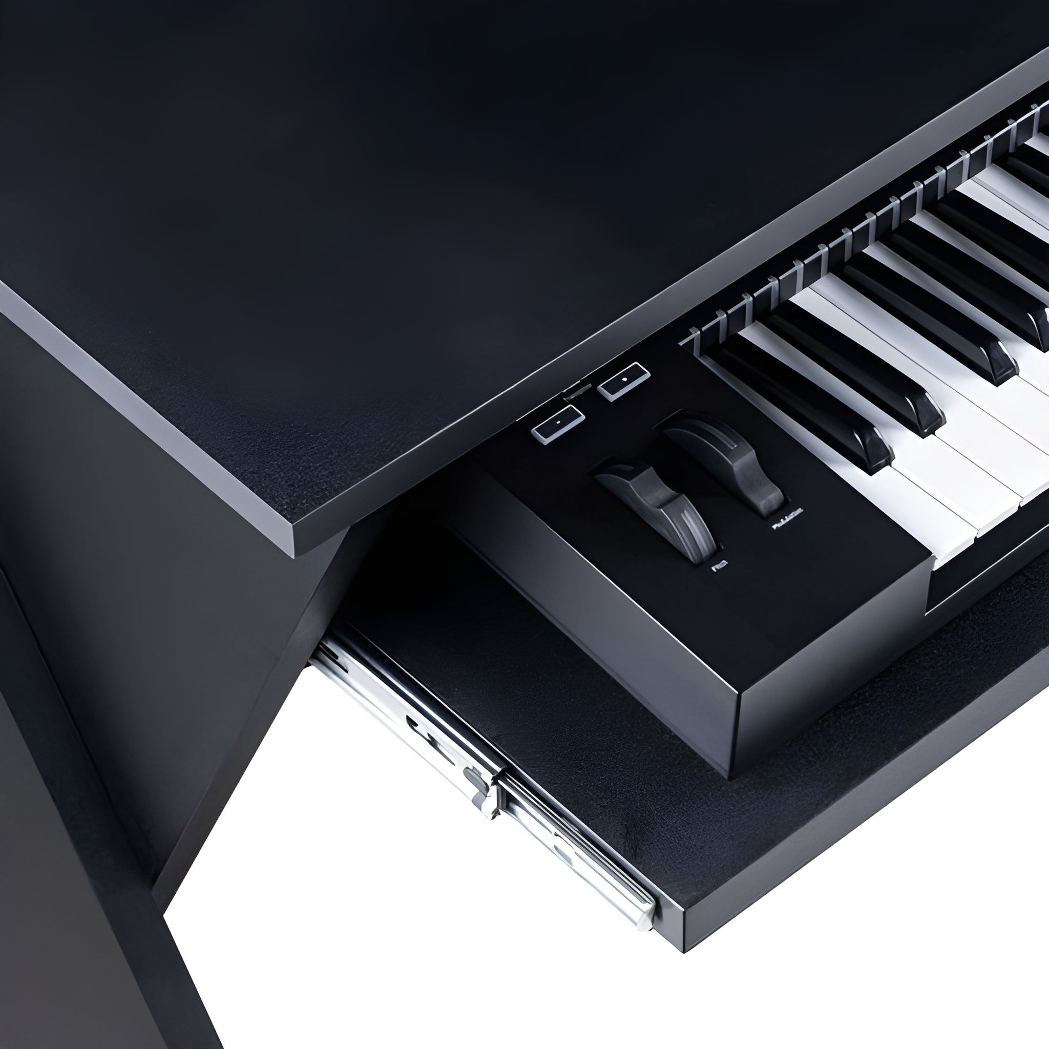 - Bandeja extraíble para teclados de hasta 88 teclas, ajustable en 4 alturas.