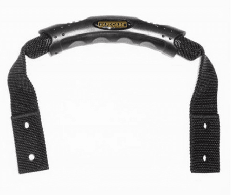 Asa de transporte Hardcase HNKIT06 (goma, 4 agujeros), color negro con logotipo. Incluye remaches y arandelas. Repuesto oficial para estuches Hardcase con patrón de 4 agujeros. Unidad de venta: 1 asa.