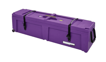 El Hardcase HNP40WPU es la versión en color morado del estuche de 40" para herrajes de batería. Diseñado para el trato intensivo en gira, combina una carcasa de polietileno de alta resistencia con 2 ruedas de servicio pesado, asas de transporte de agarre cómodo y correas con clips de cierre rápido. El cuerpo y la tapa encajan (lid locates over body) para un cierre estable, y el diseño apilable facilita el almacenamiento y la carga. Con capacidad de carga de 30 kg y dimensiones de 100,3 × 27,2 × 26,7 cm, ofrece espacio para soportes de caja, jirafas, hi-hat, bases de sillín, pedales y accesorios, manteniendo el backline ordenado y protegido bajo cualquier condición.