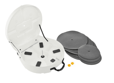 - Gira y bolos: kit de platos completo en un solo bulto, protegido y fácil de mover.