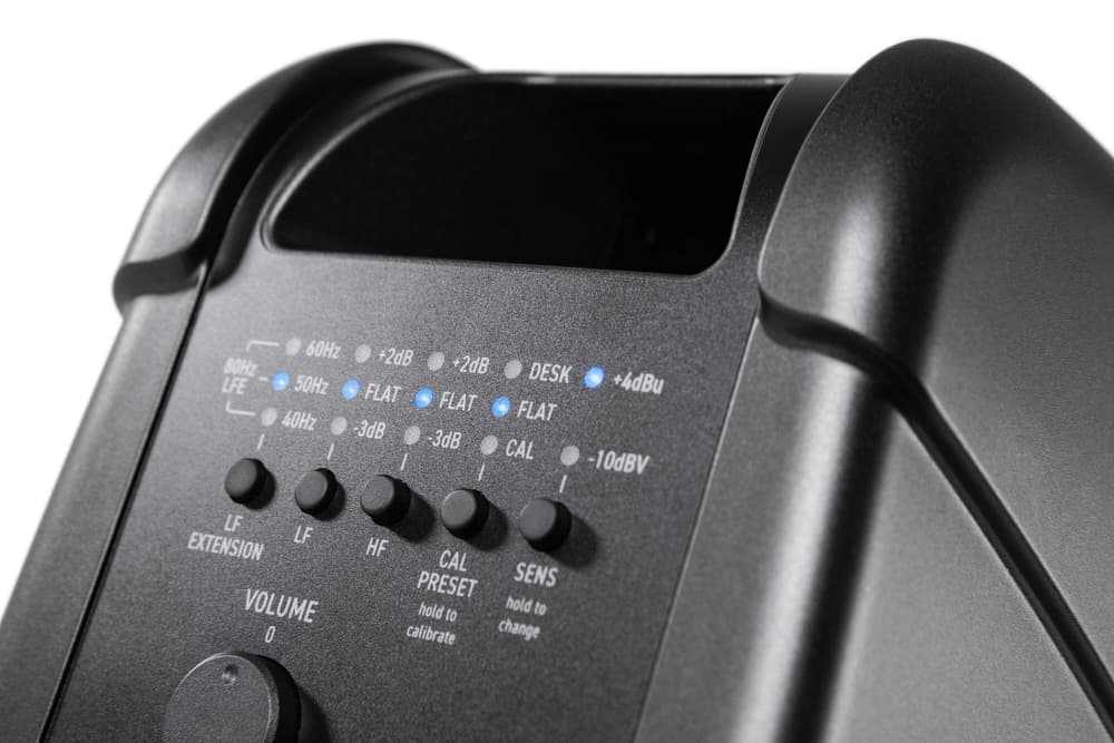 - Controles traseros: LF Extension (40/50/60/80 Hz), estantería LF (+2/−3 dB <100 Hz), estantería HF (+2/−3 dB >8 kHz) y filtro Desk (−4 dB @160 Hz / +1 dB @1,8 kHz), sensibilidad y volumen.