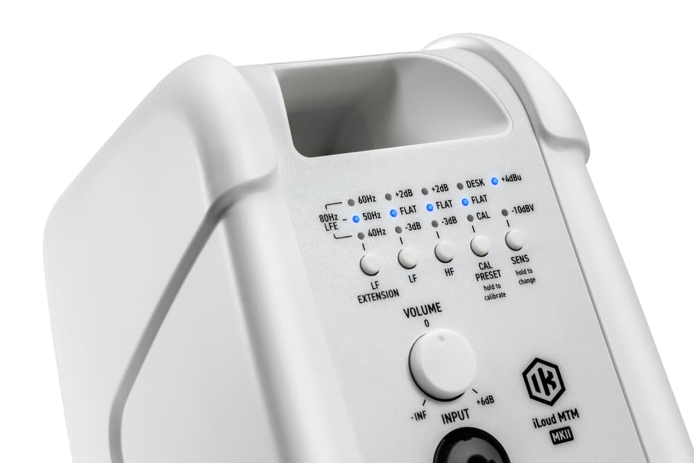 El bundle inmersivo IK Multimedia iLoud MTM MKII (11 unidades, blanco) reúne once monitores de estudio compactos de alta resolución para configurar rápidamente sistemas 7.1.4 y otras disposiciones multicanal. Frente al modelo original, el MTM MKII incorpora drivers rediseñados para más extensión y control de graves, un punto dulce horizontal más amplio y el doble de potencia de procesamiento interno con DSP a 96 kHz, que se traduce en mayor transparencia y precisión. La calibración ARC está integrada en cada altavoz y el sistema se gestiona desde X-MONITOR, que además ofrece emulación de más de 20 monitores de referencia y otros sistemas de escucha para comprobar la traducción de tus mezclas. El pack incluye micrófono de medición ARC y accesorios para ejecutar la autocalibración en minutos y cumplir directrices de instalación: el MTM MKII aparece en la herramienta Dolby DARDT para facilitar el diseño y ajuste de salas inmersivas.