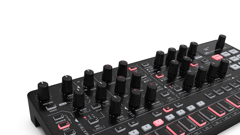 - Directo: patrones y arps al vuelo con FX integrados y salidas balanceadas TRS directas a mesa/PA.