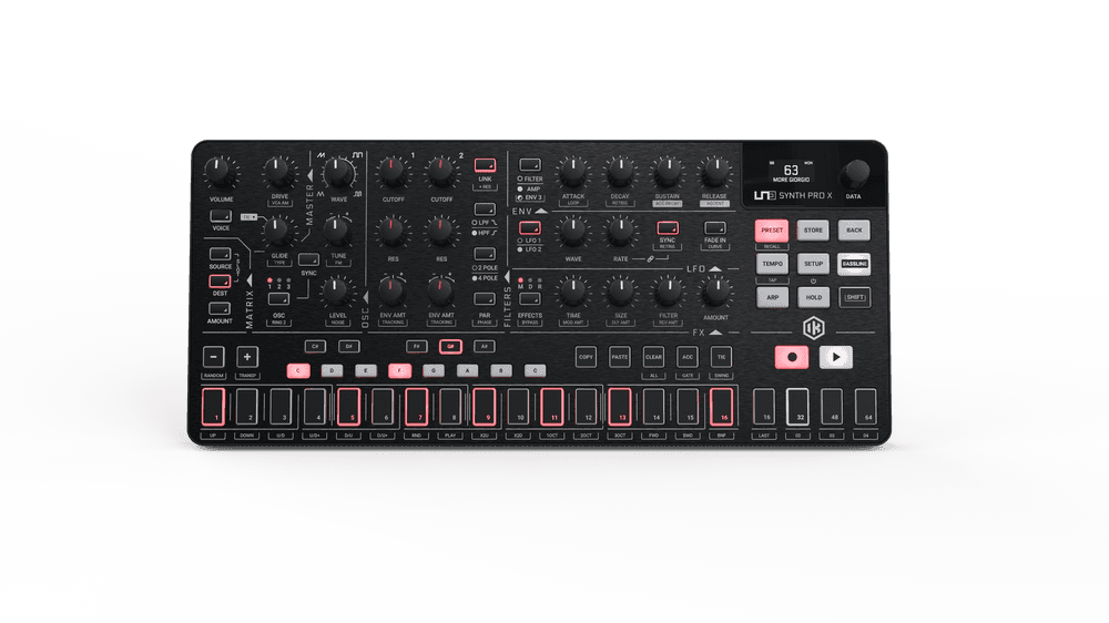 IK Multimedia UNO Synth Pro X - Sintetizador analógico parafónico de 3 osciladores con doble filtro, secuenciador de 64 pasos y E/S USB/MIDI/CV