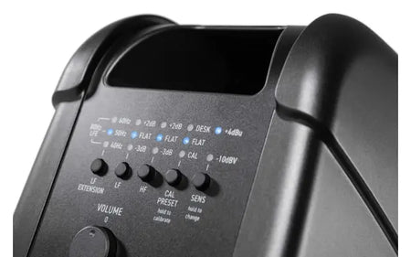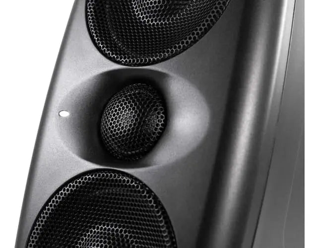 Monitor activo MTM de 2 vías/3 transductores con DSP a 96 kHz. Transductores: 2 × 5" (papel recubierto ultraligero) + 1,5" tweeter textil con cámara trasera. Potencia: 175 W RMS totales. Respuesta: 45 Hz–30 kHz (±1 dB); extensión LF 37 Hz (@ −4 dB). Crossover: lineal 8.º orden a 1,9 kHz. Fase: 0/+20° máx. desde 150 Hz. Niveles: 105,5 dB SPL continuo; 117 dB SPL pico (campo libre) / 119 dB (half-space). Filtros: HPF off/35/50/65/80 Hz; contornos LF/Mid/HF y Desk. Latencia: 2,52 ms; retardo adicional 0–10 ms. Conexiones: combo XLR/TRS balanceado, entrada XLR para mic ARC, USB-B (control). Dimensiones: 459 × 185 × 282 mm. Peso: 9,9 kg. Pods de aislamiento, cable USB-B–A, abrazadera y cable de red.