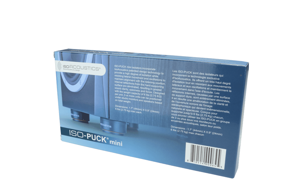 Los aisladores IsoAcoustics ISO-PUCK mini son la solución definitiva para desacoplar monitores de estudio, altavoces compactos y subwoofers ligeros de la superficie de apoyo. Cada unidad combina una ventosa superior de silicona que se adhiere firmemente al chasis del equipo y un aislador inferior de elastómero de alta durabilidad, gestionando toda la energía en su interior para eliminar resonancias y vibraciones indeseadas. Con solo 24 mm de altura y 44 mm de diámetro, estos aisladores de perfil ultrabajo mantienen el equipo estable, resistiendo el movimiento lateral y las oscilaciones, para ofrecer graves más definidos, mejor claridad y una imagen estéreo más abierta.