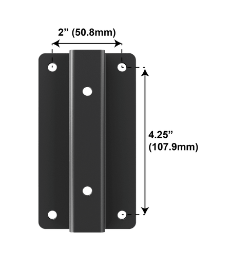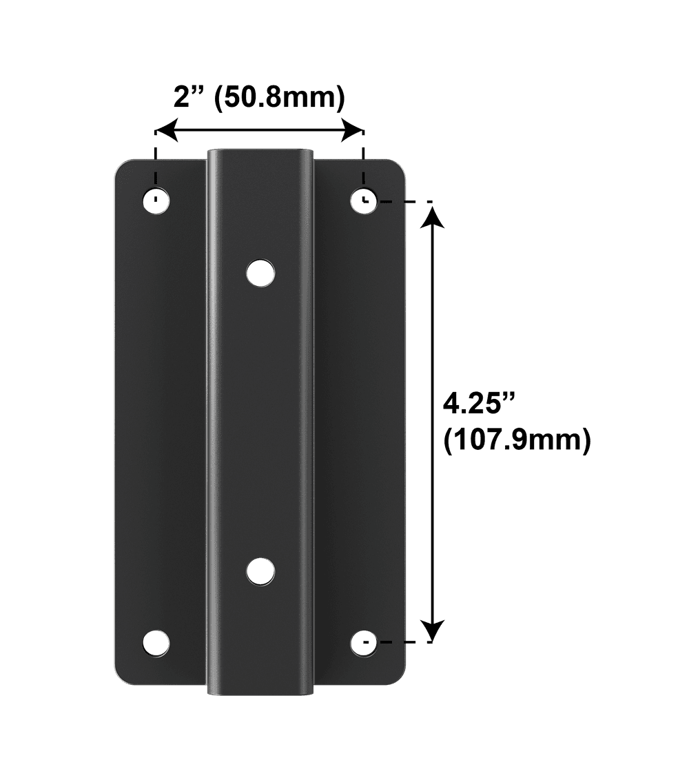 Placa de montaje de acero para V120 Mount. Orificios 50,8 × 107,9 mm. Dimensiones 71×128×20 mm. Peso 0,34 kg. Incluye tornillos M6 y ¼″-20. Compatible con L-Bracket y C-Bracket.
