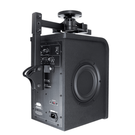 El IsoAcoustics V120 L-Bracket es un soporte de acero de perfil bajo diseñado para acoplar altavoces profesionales al V120 Isolation Mount en paredes y techos. Gracias a su innovador sistema de decoupling, elimina vibraciones y resonancias estructurales, mejorando la claridad y precisión del sonido. Su ángulo de inclinación ajustable hasta 45° y la altura regulable mediante dos postes verticales (165 mm y 305 mm) permiten orientar con exactitud cada monitor hacia la posición de escucha óptima. El mecanismo de conexión deslizante facilita la instalación y extracción rápida del altavoz sin necesidad de herramientas adicionales.
