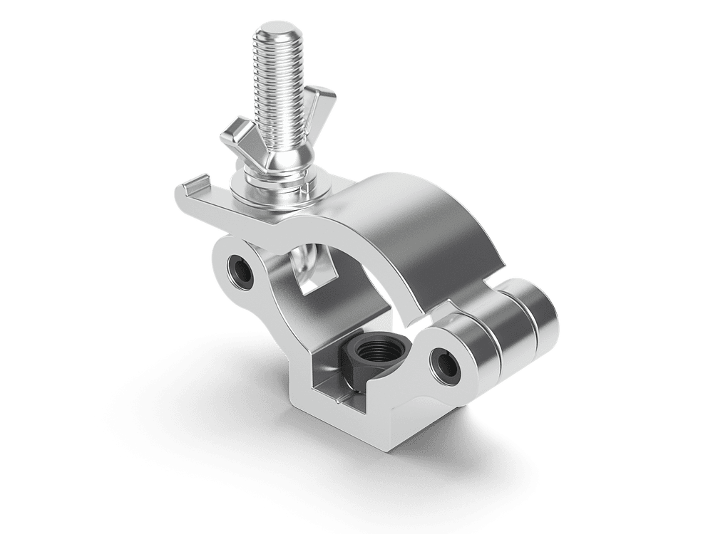 La abrazadera IsoAcoustics V120 Truss Clamp 1.5" con tuerca M10 ha sido diseñada para integrar el soporte de aislamiento V120 en truss de 1,5" (38 mm). Fabricada en aluminio resistente, se envuelve alrededor del truss y se ajusta con una perilla ergonómica, garantizando una conexión firme y duradera sin necesidad de herramientas adicionales.