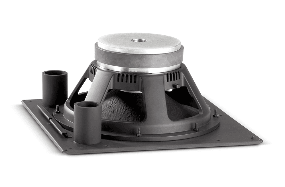 El JBL Professional Control 312CS es un subwoofer de techo de 12″ de alto rendimiento diseñado para ampliar con autoridad la respuesta en graves en instalaciones comerciales. Su motor utiliza un woofer de 300 mm reforzado con Kevlar y bobina móvil de 75 mm (3″) de alta temperatura, con suspensión bien amortiguada y geometría de imán de gap saturado para reducir la distorsión. Con 400 W AES (2 h) y 93 dB de sensibilidad, alcanza hasta 121 dB SPL medio / 124 dB pico (medido en semiespacio), aportando graves profundos con amplia reserva dinámica. Su bafle metálico portado de 366 × 366 mm integra el sistema EZRail™ que agiliza el montaje sobre la caja posterior opcional MTC-300BB12 (80 L / 3 ft³), y el conector multipin extraíble con bornes de tornillo permite pre-cablear la línea y realizar loop-through con rapidez.