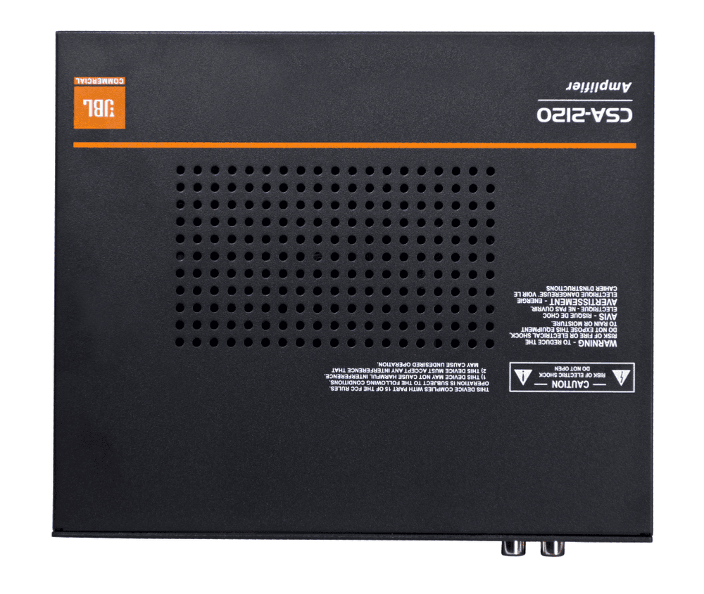 JBL Professional CSA-2120 - Amplificador comercial 2 × 120 W a 4/8 Ω, UL2043 y modo reposo automático