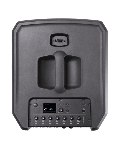 Sistema de PA de columna autoamplificado "todo en uno". Compuesto por un array vertical de 12 drivers de alta frecuencia de 2.5 pulgadas y un subwoofer bass-reflex con un woofer de 12 pulgadas. Ofrece una potencia de 2000W de pico y 1000W RMS a través de un amplificador de Clase D, alcanzando un SPL máximo de 130 dB. La cobertura nominal es de 130° H x 30° V y la respuesta en frecuencia es de 40 Hz a 20 kHz (-3 dB). Integra un mezclador digital de 7 canales con 4 entradas combo XLR/TRS, 2 entradas Hi-Z de 1/4", y una entrada de 1/8"/Bluetooth. Incorpora DSP con tecnología dbx DriveRack (AFS, EQ, limitador, compresor) y motor de efectos Lexicon. Dispone de dos canales con alimentación phantom de +48V, conectividad Bluetooth 5.0 para control mediante la app JBL Pro Connect y dos puertos USB 2.0.