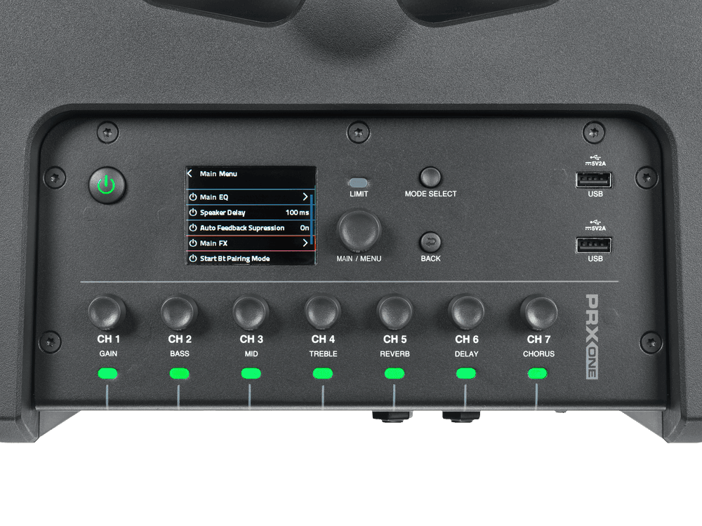 El JBL PRX ONE es la solución de audio profesional definitiva, un sistema de PA de columna "todo en uno" que combina potencia, rendimiento y portabilidad. Diseñado para músicos, DJs, presentadores y cualquier profesional que exija un sonido impecable con una configuración sencilla, el PRX ONE ofrece una experiencia sonora inigualable. Su diseño integra una columna de altavoces acústicamente optimizada, un potente woofer, un mezclador digital de 7 canales y un completo procesador de señal digital (DSP) profesional, todo en un paquete compacto y fácil de transportar.