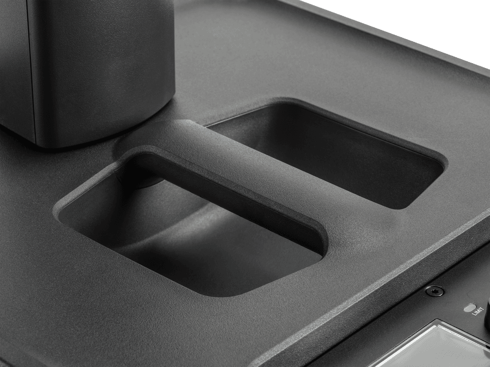 En el corazón del PRX ONE se encuentra un impresionante conjunto vertical de 12 transductores de 2.5 pulgadas, diseñados a medida para ofrecer una respuesta de alta frecuencia increíblemente consistente y natural. Gracias a la exclusiva tecnología A.I.M. (Array Inumbration Mechanics) de JBL, el sombreado de la matriz se optimiza geométricamente para garantizar una cobertura de sonido perfectamente equilibrada desde la primera hasta la última fila. Esto se complementa con un amplio patrón de dispersión de 130° en horizontal y 30° en vertical, asegurando que cada persona en la audiencia disfrute de la misma calidad de audio. Para los graves, un robusto woofer bass-reflex de 12 pulgadas extiende la respuesta de frecuencia hasta unos profundos 35 Hz, proporcionando un impacto sonoro completo y rico.