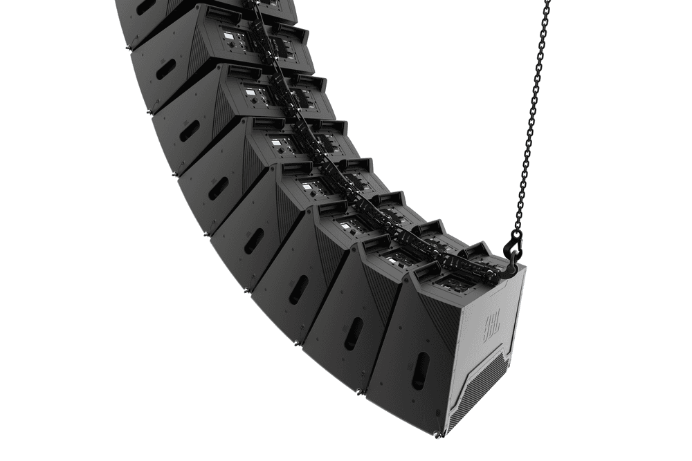 El innovador sistema de rigging de tres puntos permite configurar arrays de hasta 16 unidades del SRX910LA de forma segura y eficiente.