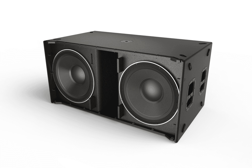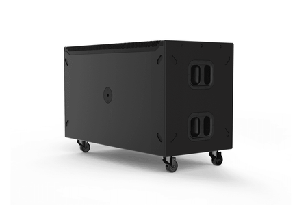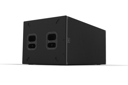 Subwoofer activo con dos transductores de baja frecuencia modelo 2279H-1 de 18 pulgadas con tecnología Differential Drive®. Incorpora un módulo de amplificación Clase D de 1100W continuos y 2500W de pico. La respuesta en frecuencia es de 31 Hz a 100 Hz (-10 dB) con un SPL máximo de 140 dB. Dispone de DSP integrado con control de filtros, retardo y presets para configuraciones omnidireccionales y cardioides. La conectividad incluye dos entradas/salidas XLR balanceadas y dos puertos Ethernet (etherCON) para control en red. El recinto está fabricado en madera contrachapada de 18 mm con acabado DuraFlex™ y cuatro asas. Dimensiones: 565 mm (alto) x 1205 mm (ancho) x 681 mm (profundo). Peso: 70.3 kg.