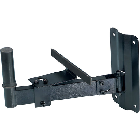 Soporte de pared para caja acústica fabricado en tubo de acero de alta resistencia con acabado en pintura negro mate antirreflectante. El sistema cuenta con un diámetro de inserción estándar de 35 mm y una capacidad de carga máxima certificada de 35 kg. Incorpora articulación direccional para ajuste en ejes horizontal y vertical, asegurada mediante un brazo de refuerzo trasero para máxima estabilidad mecánica. Dimensiones de la placa base: 124 mm x 250 mm. Longitud del brazo: 380 mm aproximadamente. Peso de la unidad: 2.9 kg.