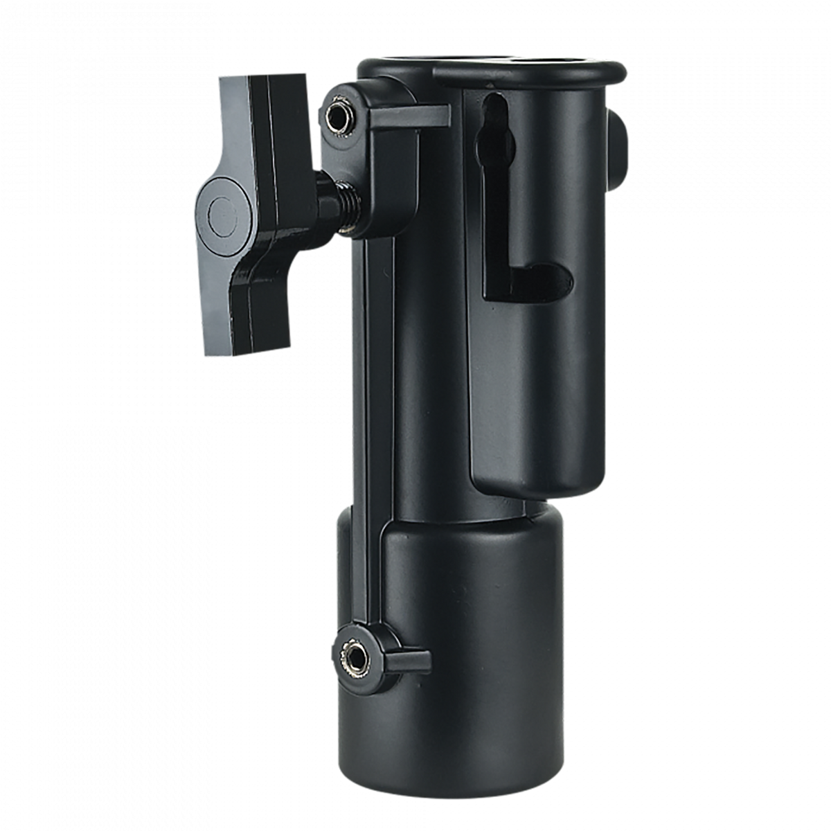 Con unas dimensiones compactas de 85 x 80 x 160 mm y un peso aproximado de 0,52 kg, este adaptador combina robustez y facilidad de manejo. Es una solución sencilla, eficaz y versátil para técnicos de iluminación, empresas de alquiler de sonido e iluminación, compañías de espectáculos, DJs móviles y cualquier otro profesional que trabaje habitualmente con trípodes y barras en T estándar.