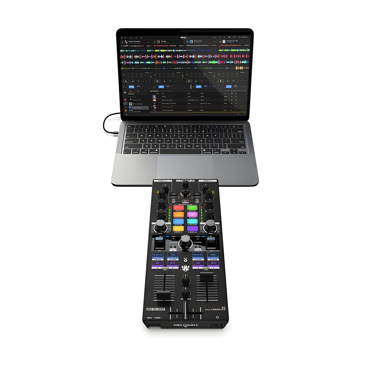 - Máxima portabilidad sin renunciar a control: opera 4 decks con un layout intuitivo y completo en un cuerpo compacto.