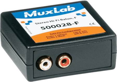 El MuxLab 500028-F es un balun de audio estéreo de alta fidelidad diseñado para solucionar uno de los problemas más comunes en instalaciones audiovisuales profesionales y domésticas: la transmisión de señales de audio analógico a largas distancias sin pérdida de calidad. Este dispositivo permite extender una señal de audio estéreo de nivel de línea desbalanceada (RCA) utilizando un único cable de red Cat 5e o Cat 6, alcanzando distancias de hasta 1 km (3,250 pies).