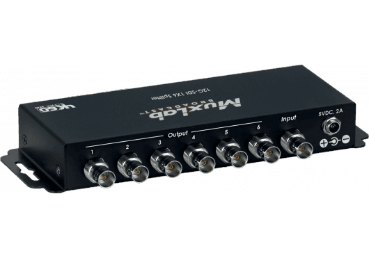 El MuxLab 500718 es un distribuidor de señal de vídeo profesional (Splitter) diseñado para los entornos más exigentes de broadcast y producción audiovisual. Este dispositivo permite tomar una única fuente de entrada SDI —desde resoluciones estándar hasta el ultra alta definición 4K— y distribuirla simultáneamente a seis salidas amplificadas e idénticas sin pérdida de calidad ni latencia. Es la solución definitiva para ingenieros que necesitan multiplicar una señal de cámara o mezclador hacia múltiples monitores, grabadores o sistemas de ingesta.