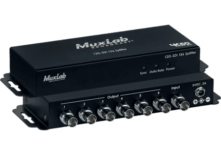 MuxLab 500718 - Distribuidor 12G-SDI 1x6 con Re-clocking y Soporte 4K/60Hz