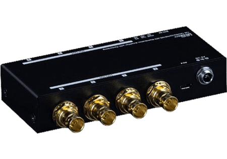 Su diseño compacto en chasis de metal garantiza durabilidad y protección contra interferencias electromagnéticas, ideal para instalaciones fijas en estudios o para el uso rudo en unidades móviles y eventos en vivo. Además, los conectores BNC chapados en oro aseguran una conductividad óptima y resistencia a la corrosión a lo largo del tiempo.