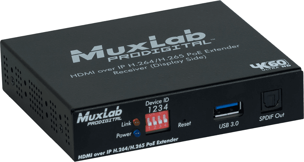 MuxLab IMU-500762-RX - Receptor HDMI sobre IP H.264/H.265 con PoE