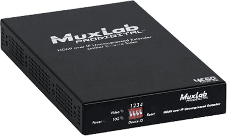 El MuxLab 500768-RX es un receptor AV sobre IP de alto rendimiento diseñado para la distribución de señales HDMI 4K sin comprimir a través de redes Ethernet. Este dispositivo es la solución ideal para sistemas audiovisuales profesionales que demandan la máxima calidad de imagen y una latencia cero. Permite recibir señales de vídeo con resolución de hasta 4K (3840x2160) a 60Hz (4:2:0) desde un transmisor compatible, transmitidas a través de un conmutador Ethernet de 10G. Su capacidad para funcionar en configuraciones punto a punto, punto a multipunto y multipunto a multipunto le otorga una flexibilidad excepcional para adaptarse a cualquier escala de instalación.