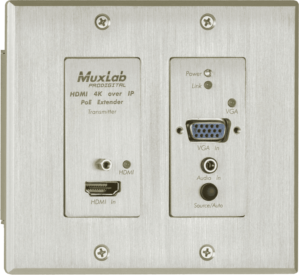 MuxLab 500773-TX - Wallplate Transmisor HDMI/VGA AV sobre IP 4K PoE