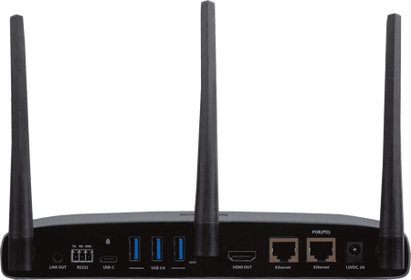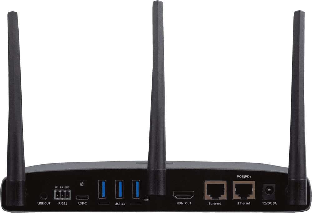 - Conexión Inalámbrica a Periféricos USB: Conecte de forma inalámbrica su ordenador portátil a la cámara, micrófono y altavoces USB de la sala para una experiencia de reunión híbrida completa.