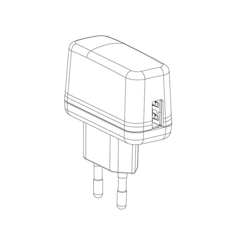 Fuente de alimentación conmutada AC-DC compacta modelo POWER1-EU de la marca Triton Blue. Entrada de voltaje universal 100-240V AC 50/60Hz y salida regulada de 5V DC con una corriente máxima de 1000 mA (1A). Equipado con conector de salida tipo Mini USB, diseñado específicamente para el suministro eléctrico en modo autónomo (Stand Alone) de interfaces de control DMX y sistemas de iluminación arquitectónica compatibles con la serie Nicolaudie SLESA y Sunlite Suite. Carcasa fabricada en ABS color negro con dimensiones de 55.1 x 24.1 x 35.49 mm. Certificación de conformidad CE y cumplimiento de normativa RoHS.