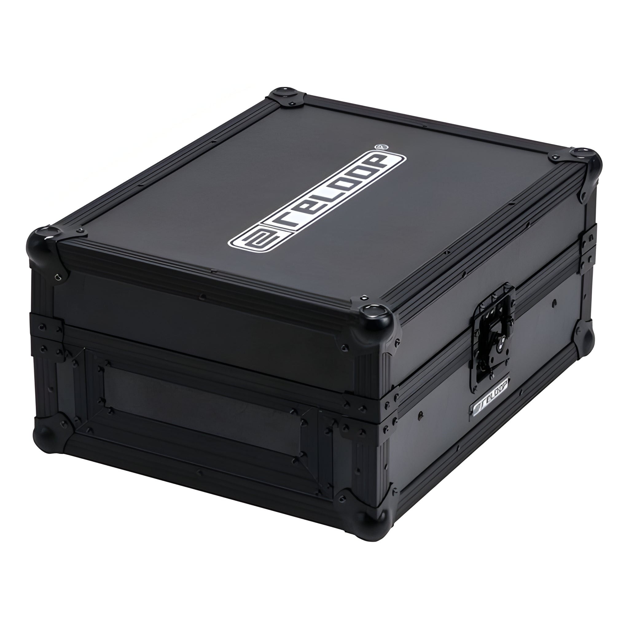 Flight case para mezcladores tipo club; construcción en madera y aluminio con superficie exterior de PVC; bandeja para portátil con sujeciones; espuma interior de alta densidad con kit modular de 5 piezas; cortes frontal y trasero; cierres tipo mariposa con protección antirrobo; asa empotrada con muelle; color negro; dimensiones interiores 334 × 465 × 100 mm; dimensiones exteriores 424 × 531 × 247 mm; peso 9 kg; compatible con Reloop ELITE, RMX-60/90, Pioneer DJM-S9/900NXS2/750/850, Rane Seventy-Two/Sixty-Two/MP2014/MP2015, Allen & Heath Xone:96, Denon DJ X1800 Prime.