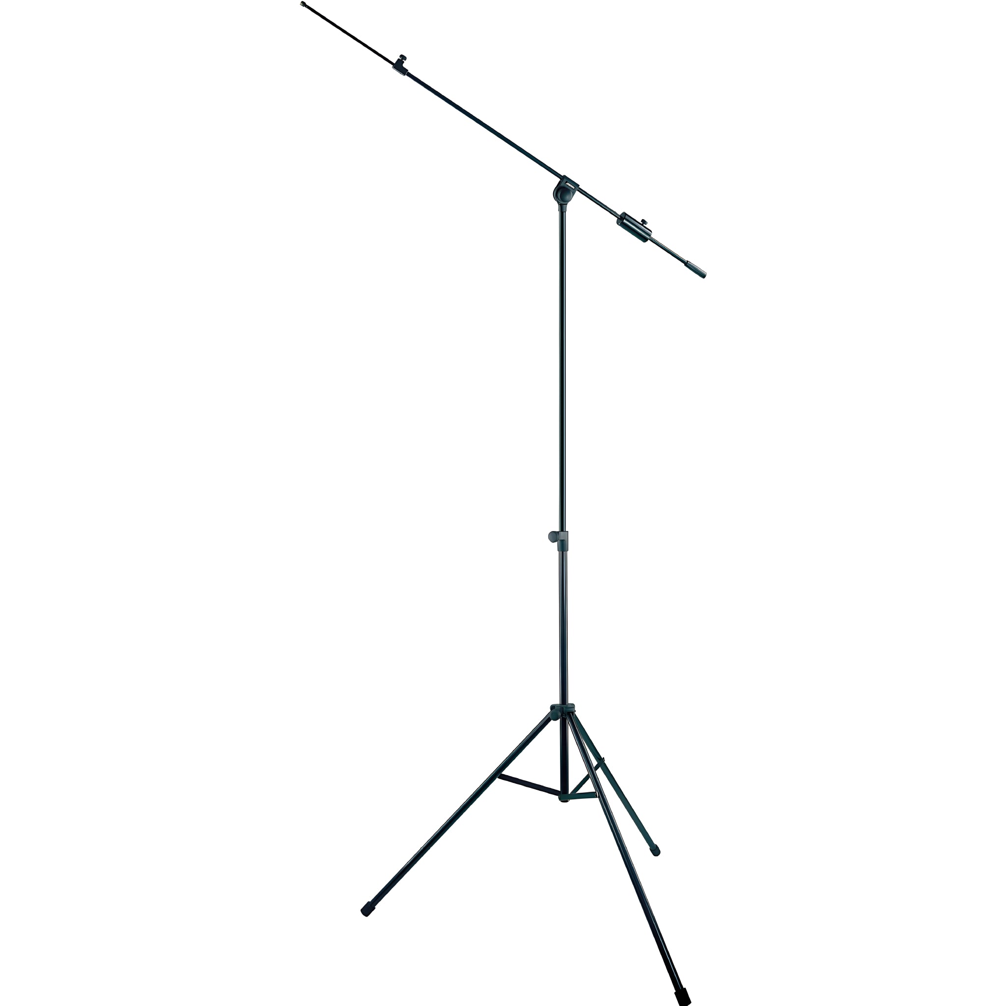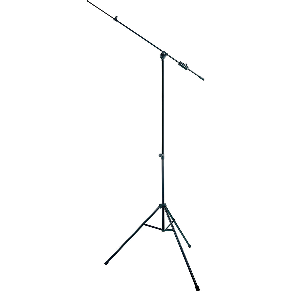 Soporte de micrófono profesional de grandes dimensiones (tipo Overhead) con base trípode y brazo telescópico. Estructura fabricada en acero con articulación superior en aluminio fundido a presión y uniones de base en nylon de alta resistencia. El sistema cuenta con una base de gran estabilidad con un diámetro de apertura de 1500 mm. La altura de la columna vertical es ajustable entre 1600 mm y 2350 mm. Incorpora un brazo jirafa telescópico ajustable entre 1350 mm y 2050 mm, equipado con un contrapeso de acero sólido para el balanceo de cargas. Peso total del soporte: 5,2 kg. Acabado en color negro mate antirreflejos.