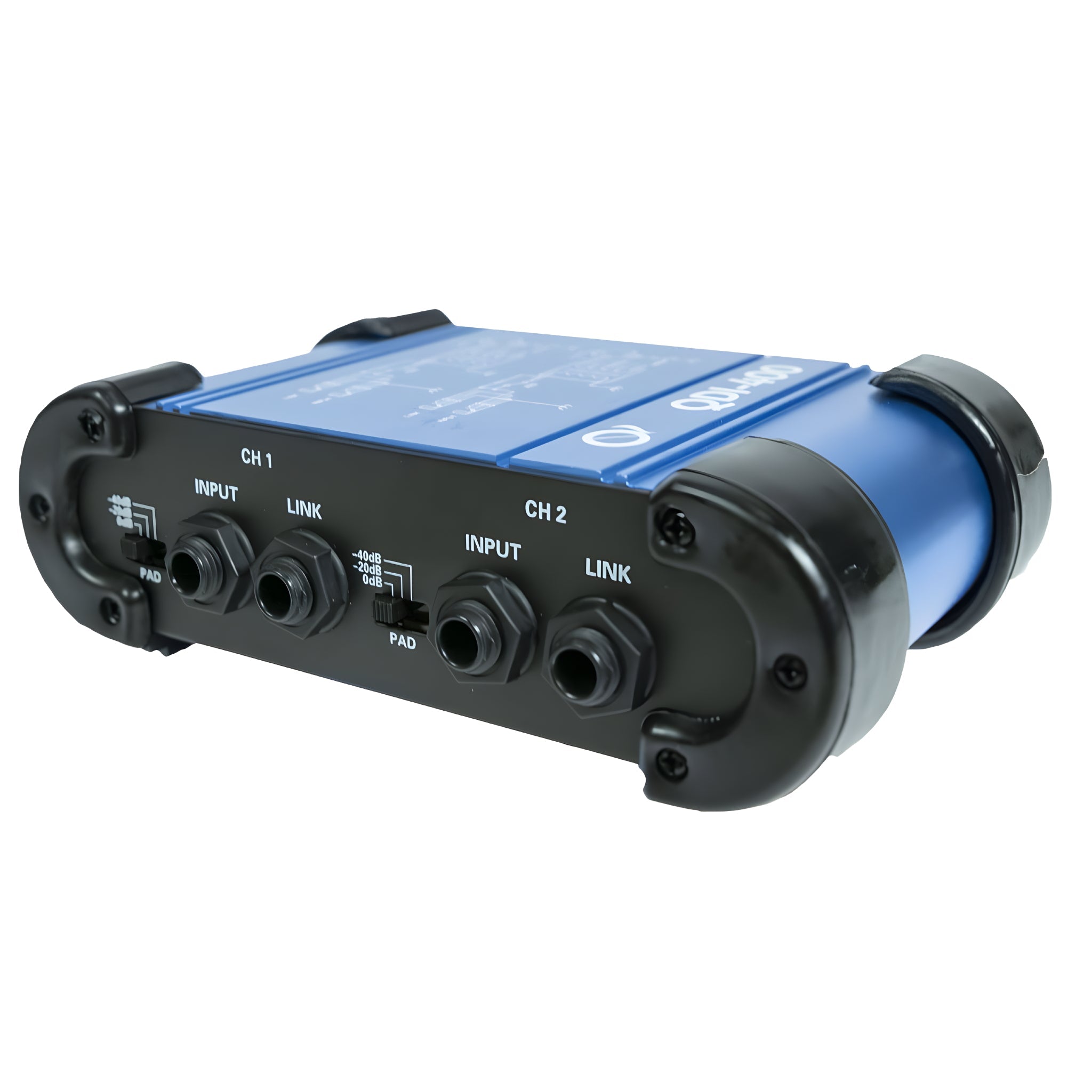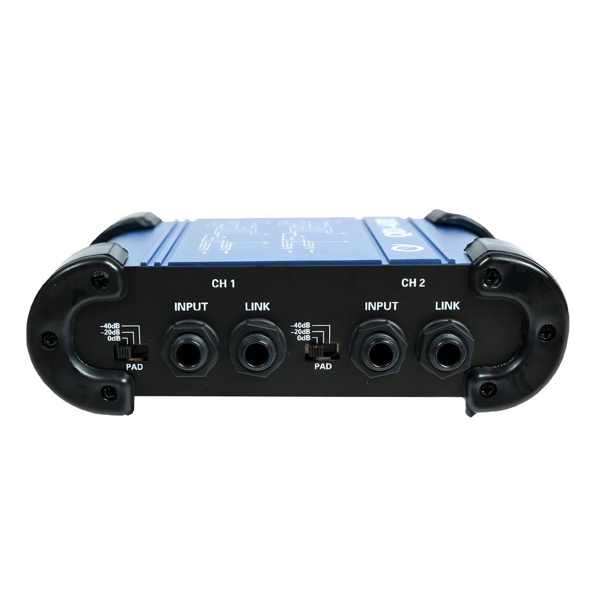 Caja de inyección directa pasiva de dos canales. Dispone de dos entradas de instrumento no balanceadas en formato Jack de 6.35 mm y dos salidas de línea balanceadas en formato XLR. Cada canal incluye un interruptor de atenuación (PAD) seleccionable entre 0 dB, -20 dB y -40 dB. Incorpora un conmutador de desconexión de tierra (Ground Lift) para la eliminación de ruidos y zumbidos. El chasis está fabricado en metal para una máxima durabilidad.