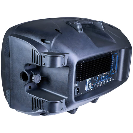 La versatilidad es uno de los puntos fuertes de este altavoz. Incorpora un mezclador integrado con múltiples opciones de entrada: una entrada de micrófono combo (XLR y Jack 1/4") y una entrada de línea/auxiliar (XLR y RCA). Esto permite conectar simultáneamente diversas fuentes de audio, como micrófonos, instrumentos o mezcladores externos. Además, cuenta con una salida de línea XLR para enlazar con otros altavoces activos y expandir el sistema de sonido fácilmente. Para un ajuste rápido del tono, dispone de un ecualizador de 2 bandas que permite controlar graves y agudos.