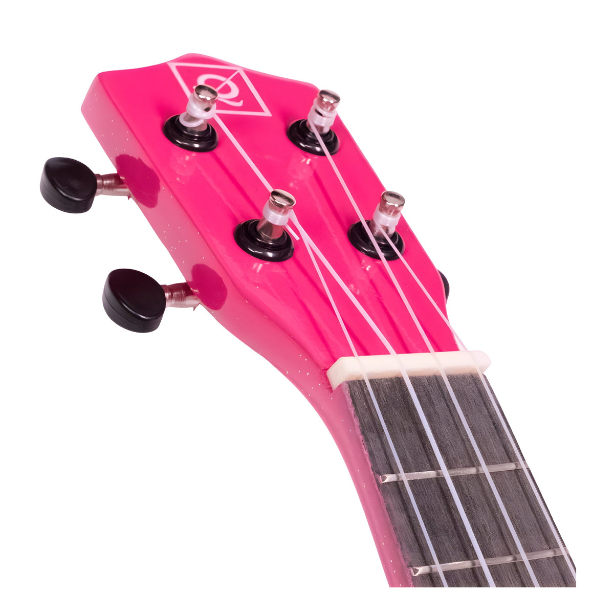 Ukelele de tamaño soprano con cuerpo (tapa, aros y fondo) fabricado en madera de tilo. El mástil es de composite y cuenta con un diapasón de palorrosa con 12 trastes e incrustaciones de puntos perlados. El puente está fabricado en palorrosa. El instrumento viene encordado con cuerdas Aquila Nylgut. Los clavijeros de afinación son de diseño abierto con herrajes en color negro. El acabado es en color rosa brillante. Incluye funda de transporte.