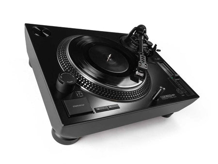 Con tres velocidades (33⅓, 45 y 78 rpm), pitch con rango seleccionable ±8 % / ±16 % / ±35 % y botón de pitch reset para volver instantáneamente a 0 %, el RP-7 recupera las prestaciones de la serie profesional de Reloop en un formato compacto. El brazo recto está equilibrado estáticamente y su base VTA es ajustable (0–6 mm), eliminando la necesidad de antiskating y reduciendo márgenes de error en la instalación. La luz LED de aguja de aluminio, desmontable y giratoria, asegura visibilidad en cabinas oscuras, y el módulo de conexiones empotrado facilita una integración limpia en el setup.
