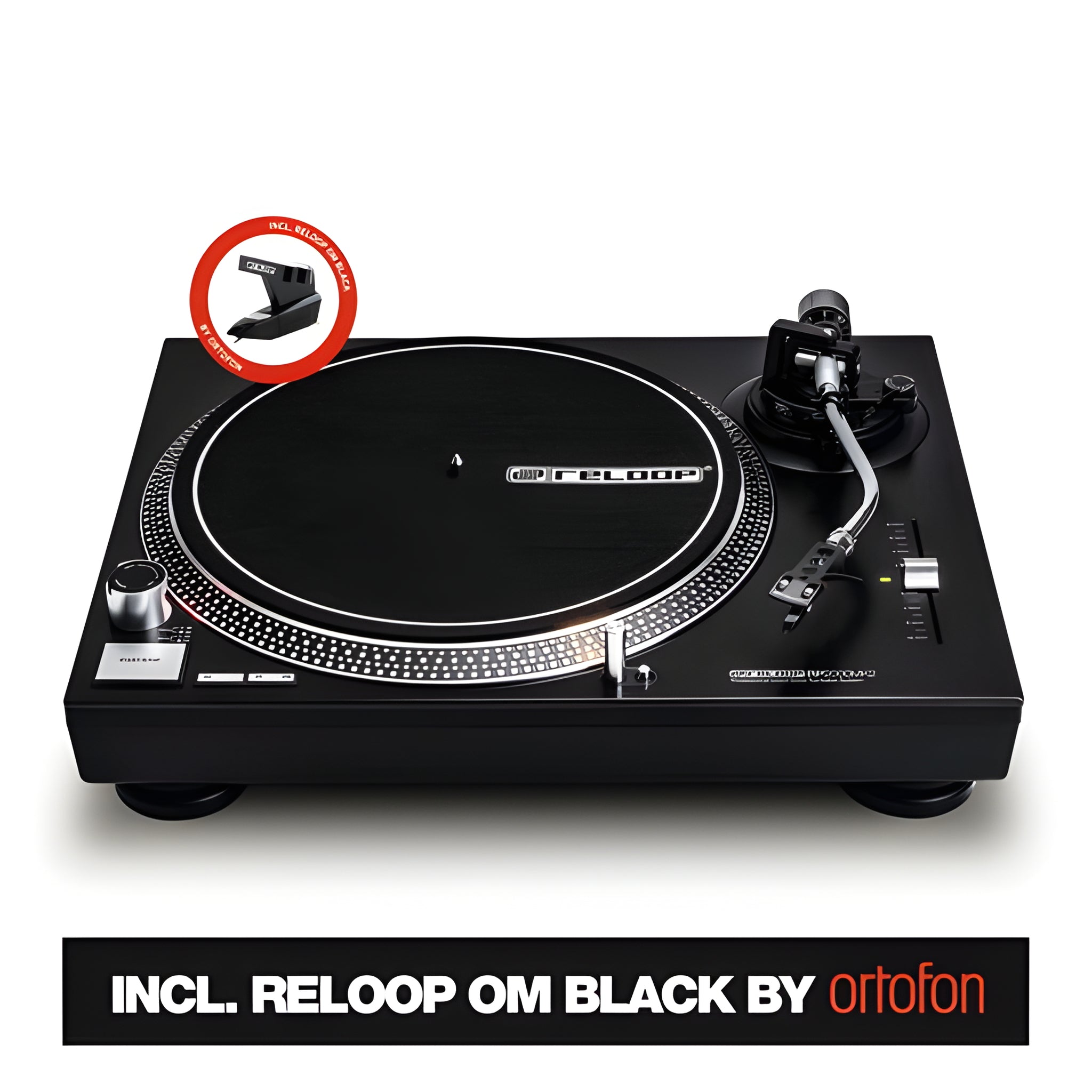 Reloop RP-2000 MK2 - Plato DJ de tracción directa por cuarzo con brazo en S y cápsula Ortofon OM Black