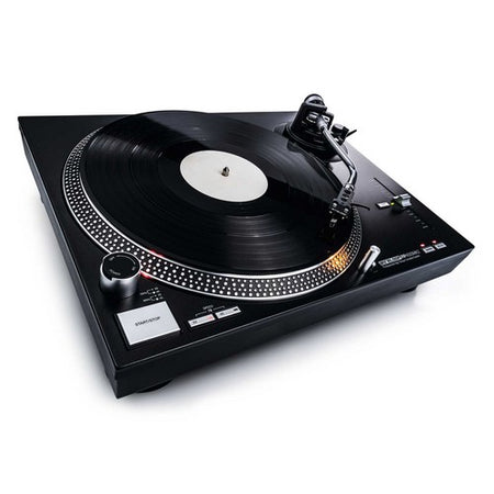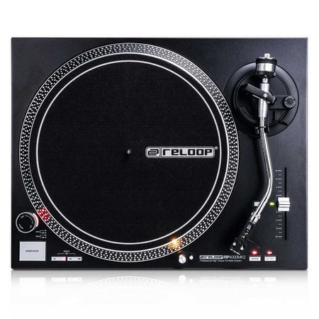 Plato giradiscos de tracción directa con cuarzo; par de arranque > 1,8 kg·cm; velocidades 33⅓/45/78 rpm; pitch ±8 % / ±16 % con tempo reset; reverse; plato de aluminio Ø 332 mm; brazo en S con elevador hidráulico y anti-skating 0–7 g; wow & flutter < 0,2 % WRMS; S/R > 50 dB (DIN-B); salida phono RCA y borne GND; alimentación AC 115/230 V, 50/60 Hz; dimensiones 450 × 352 × 144 mm; peso aprox. 9,8 kg; incluye cápsula Reloop OM Black (by Ortofon), headshell, slipmat, contrapeso, plato y cable de red.